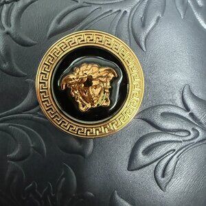 Versace Embossed Blue Calf Leather Shoulder Crossbody Messenger Bag, 1002885