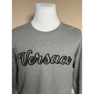 Versace Embroidered Men's Long Sleeve Sweatshirt Fleece Gray XS 1014426 NWT $750