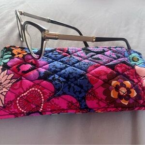 Please note these are used and frame only. Might need to be adjusted to fit snug. Discover elegance with these sophisticated frames, perfect for any occasion. Paired with a vibrant floral case for a touch of color.