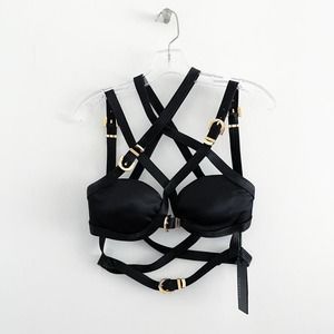 Versace Fall 2019 Runway Black Silk Satin Cage Bra Cropped Bondage Top 42