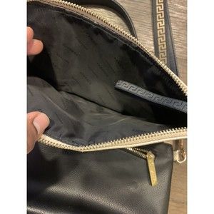 Elevate your style with this chic Versace Fragrance Women's Crossbody bag. Crafted from high-quality leather, this pre-owned bag features an adjustable strap for a comfortable fit. The exterior of the bag is a striking black color with beautiful golden accents, making it a perfect accessory for any outfit.