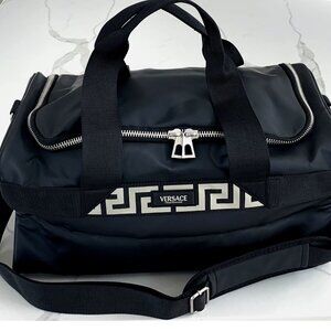 Versace Fragrances Black Duffle with Silver Tone Zipper Travel Overnight Bag New