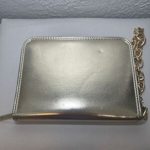 Features a stylish chain detail. Perfect for evening outings. Good pre-owned condition, minor discoloration inside and minor scuff of the back (see pictures).