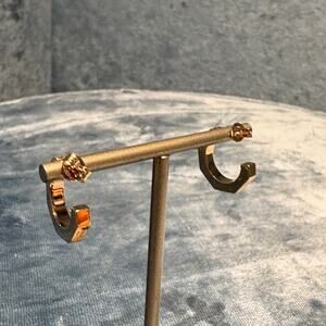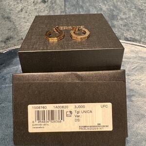 Add a touch of timeless glamour with these chic Versace hoop earrings. Crafted with precision and finished in a radiant gold tone, they showcase the brand’s iconic design sensibility. Perfect for elevating both everyday looks and evening ensembles, these earrings embody luxury in a sleek and modern form.