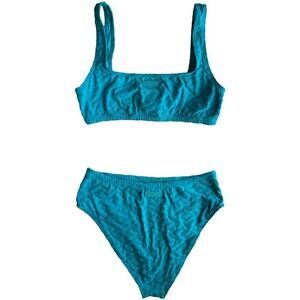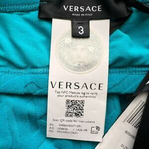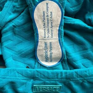 Versace Greca Blue Sponge Knit Bikini Top and Bottom Set, IT3/M
