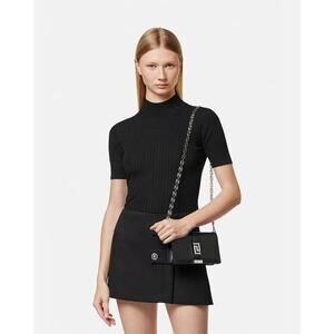 Versace Greca Goddess Black Leather Mini Crossbody Bag Silver Chain NWT $1495