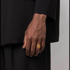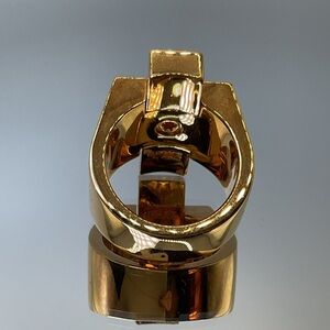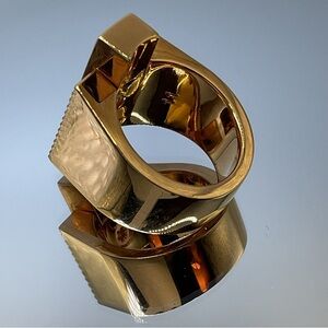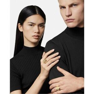 Synonymous with quality and design creativity, this ring features the iconic Versace brand logo. The gold tone finish gives it a classic and elegant look. Ideal for those who appreciate high quality designer accessories. New with tags. Made in Italy. Unisex. US size 5.5-6. Retail $538!