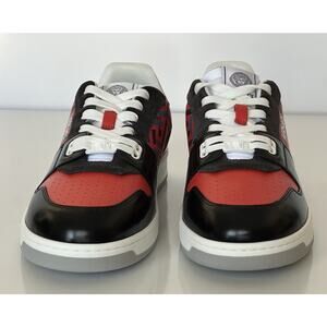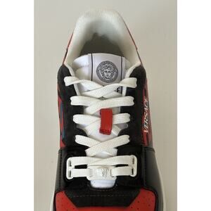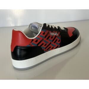 Versace Greca Men’s Leather Black/Orange Red Sneakers 13 US (46) 1013377 IT NIB