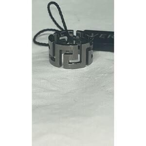 Versace Greca Ring - Black/Silver - Size 4.75 - Unisex - NEW