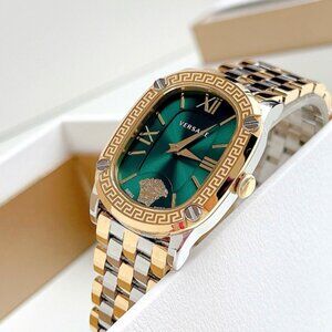 Versace Green Dial 35mm Two Tone Gold Ladies Watch New