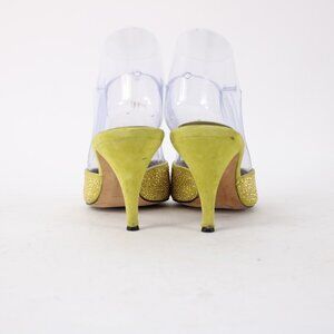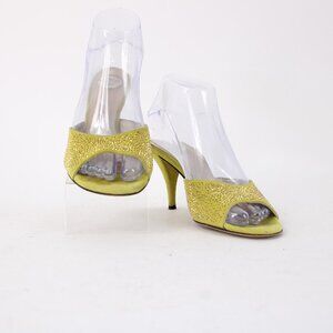 Versace Heels Sz 37 Lime Green Gold Studded Leather Suede AS IS 3" Heels