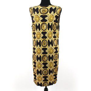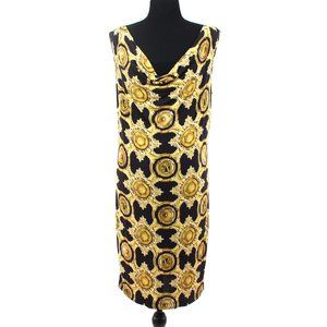 Versace Jeans Black Gold Design Draping Neckline Sleeveless Shift Dress Size 48