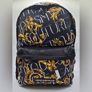 Versace Jeans Couture Logo Black And Yellow Baroque Print Backpack