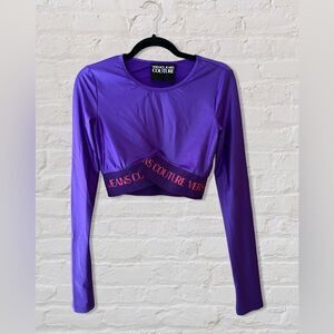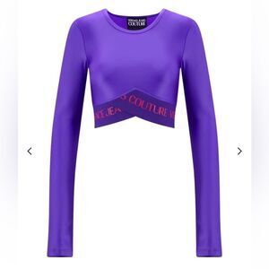 Showcasing Versace Jeans Couture's penchant for branded designs, this purple crop top is designed with a logo-print asymmetric underband.