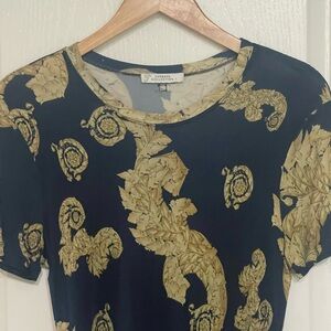 Versace Jeans Couture Navy Blue Gold Chromo Couture T-Shirt Semi Sheer Long Sm