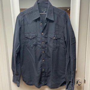 Versace Jeans Couture Black Shirt, size large, cherub metal snaps, 100% cotton.