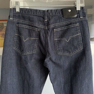 Versace Jeans Couture Vintage 90s Navy Blue Striped Jeans Flare Size 27