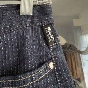 Versace Jeans Couture Vintage 90s Navy Blue Striped Jeans Flare