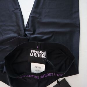 Versace Jeans Couture Women Sz 38 US 2 Black Sumatra Logo Waistband Leggings