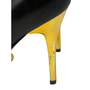 Versace Leather La Medusa Embellished Pointed Toe Pumps Heels Black Size 36