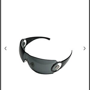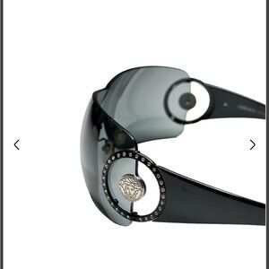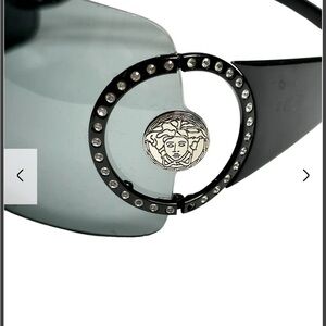 Experience luxury with these Versace black sunglasses, featuring the iconic Medusa medallion in a striking silver finish. The bold design is enhanced by a decorative border of silver-toned studs, making these sunglasses a statement accessory for any occasion.