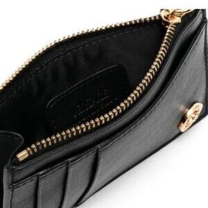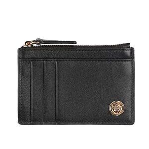 Made from calfskin leather, it features an iconic, gold-toned Medusa Biggie emblem, eight card slots, and a zipped coin compartment.