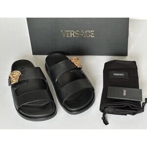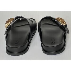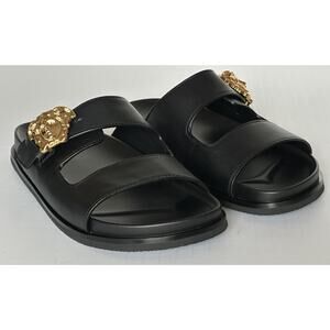 Versace Medusa Black Leather Slides Sandals 8.5 US (41.5 Euro) 1020767 NIB $700
