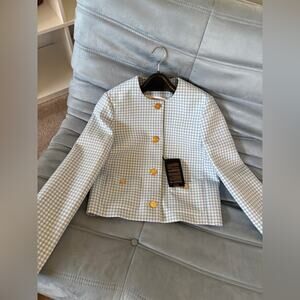 Versace Medusa Blue and White Checkered wool jacket 46