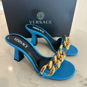 Versace Medusa Chain Mid Heel Slide Sandals