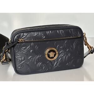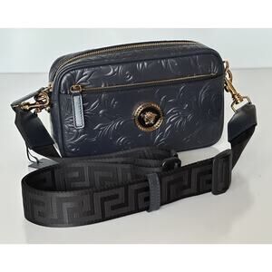 Versace Medusa Head Embossing Calf Leather Blue Crossbody Bag 1005464 IT NWT