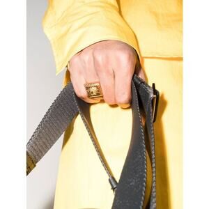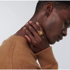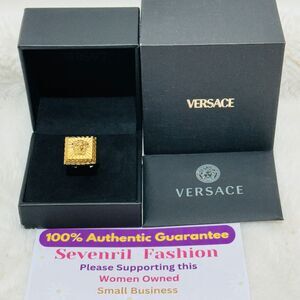 Authentic Versace Medusa Head Square Ring, crafted in a luxurious gold-tone finish. Featuring the iconic Medusa head emblem framed within a sleek square design, this ring perfectly embodies Versace’s signature mix of opulence and contemporary style.
