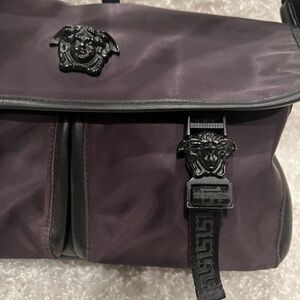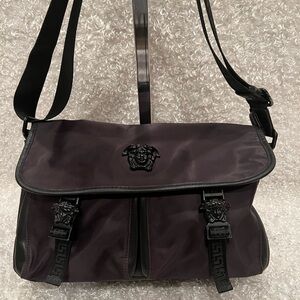 Versace Medusa Leather-Trimmed Unisex Messenger Bag - Black. Pre-owned. See pictures