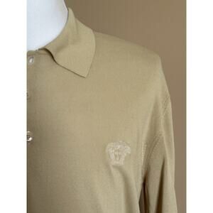 Versace Medusa Lightweight Light Sand Knit Polo Sweater 54 Euro 1019329
