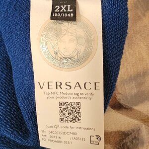 Versace Medusa Logo Royal Blue Sweatshirt Men's XXL Authentic. Verifiable with NFC Tag (see pic #6). This sweatshirt sweater is in pristine condition. No flaws. No holes or rips. No smells. The royal blue pops with the Versace Medusa Logo. This is perfect for the upcoming winter season. Definitely a head turner. Will get lots of compliments.