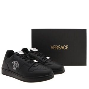 Versace Medusa Men Sneakers Black Leather Size 44 / 11 US New
