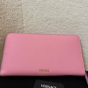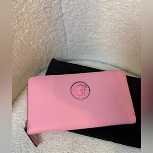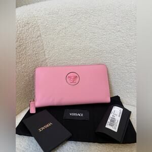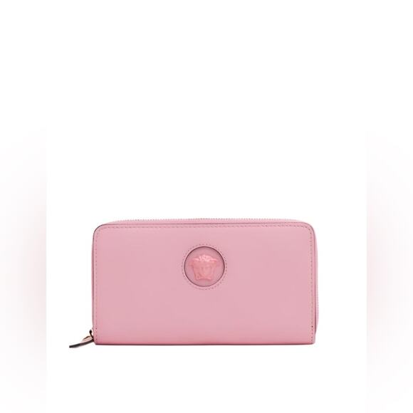 This Versace Medusa Leather Zip-Around Wallet is the perfect blend of elegance and practicality. Crafted in Italy from premium leather, it features the iconic Medusa emblem for a signature touch of luxury. The zip-around closure keeps your essentials secure, while the interior is thoughtfully designed with ample storage for cards, cash, and coins.