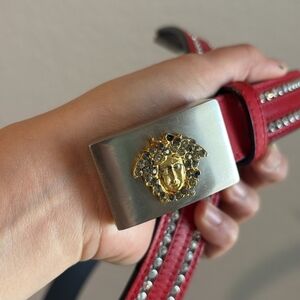 Versace Medusa Red & Gold Rhinestone Belt Women's (36" Total Length)