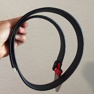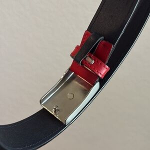 This Versace Medusa Red & Gold Rhinestone Belt is a luxurious accessory designed for women. Made from leather with rhinestone accents, this medium-width belt features a solid red color and a buckle closure. The iconic Versace brand and elegant design make this belt a stylish addition to any outfit. Made in Italy, this 90/36 belt adds a touch of bling to your wardrobe, perfect for a chic and sophisticated look.