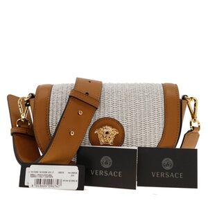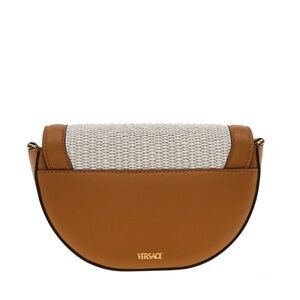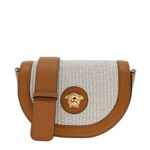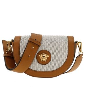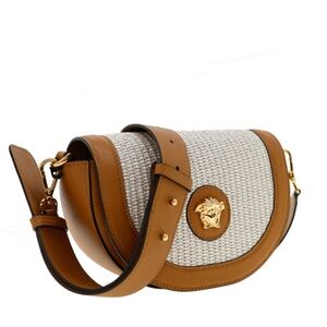 Versace Medusa Saddle Shoulder Bag Brown Leather Raffia New