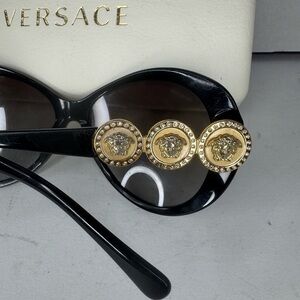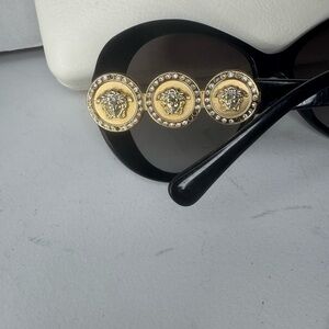 Versace Medusa Sunglasses Black Frame Gold Medusa With Small Clear Crystals.