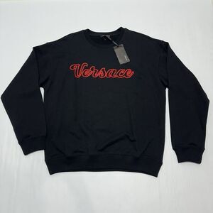 Versace Men Embroidered Red Logo Black Sweatshirt Sweater Size XL NWT $850