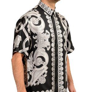 This is authentic Versace Men's 100% Silk Heritage Print Short Sleeve Shirt