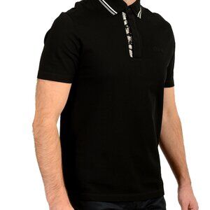 This is authentic Versace Men's Black Logo Embroidery Short Sleeve Polo Shirt