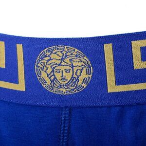 This is authentic Versace Men's Blue Greca Border Low Rise Trunk Underwear