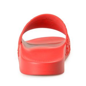 VERSACE MEN'S DEEP RED "GRECA" PRINT EMBOSSED POOL SLIDE FLIP FLOPS SHOES