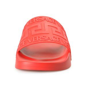 Versace Men's Deep Red "Greca" Print Embossed Pool Slide Flip Flops Shoes