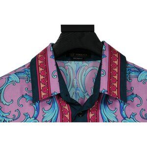 Versace Mens Floral Silk Button Down Shir 41 / 16 Purple Pink Blue Green Paisley