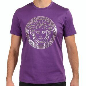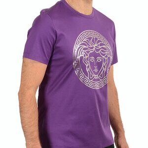 Versace Men's Purple & Silver Medusa Logo Print Short Sleeve T-Shirt US XS IT 46