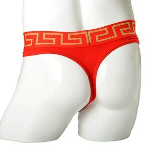 This is authentic Versace Men's Red & Gold Border Stretch Thong Underwear