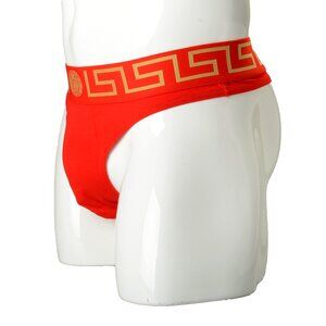 This is authentic Versace Men's Red & Gold Border Stretch Thong Underwear